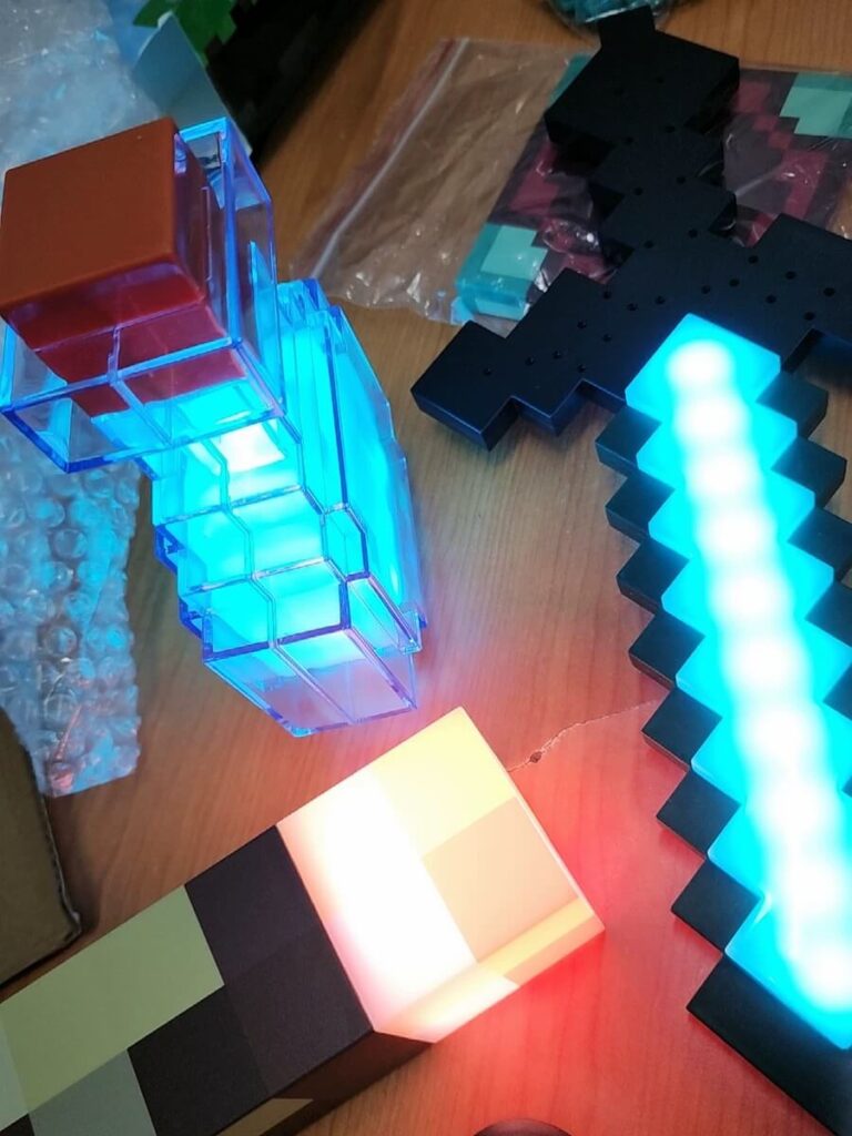 Pixel Dual-Mode Sword & Pickaxe, Light & Sound Firing Pixel Bow & Arrow, Light & Sound Diamond Sword, Pixel Torch Night Light, Pixel Lantern Night Light, Pixel Potion Bottle Night Light